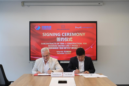 12月10日,水电五局与塞尔维亚本土企业“千禧团队”(Millennium Team)在贝尔格莱德正式签署贝尔格莱德地铁1号线一期TBM1盾构施工分包合同。国际公司党委书记、总经理刘孟路代表水电五局出席签约仪式并完成签约,标志着中国盾构技术与施工能力在欧洲市场实现又一重要突破。