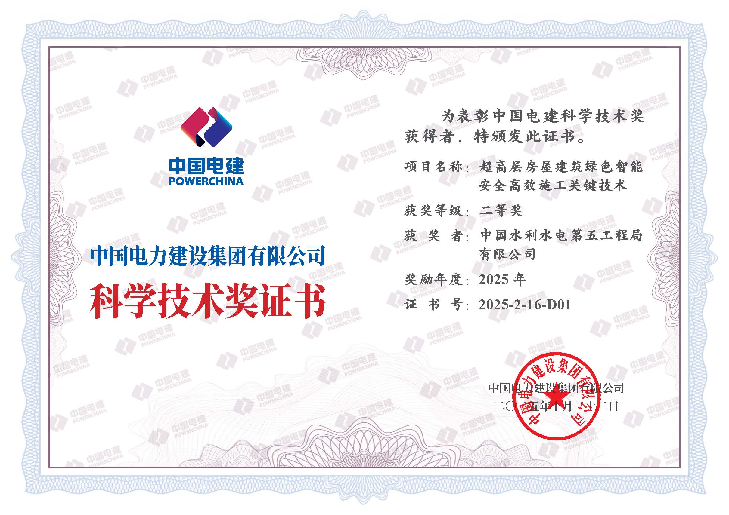 日前,中国电力建设股份有限公司发文表彰了2025年度中国电建科学技术奖,共评选出获奖科技成果141项,其中特等奖5项、一等奖33项、二等奖44项、三等奖59项。