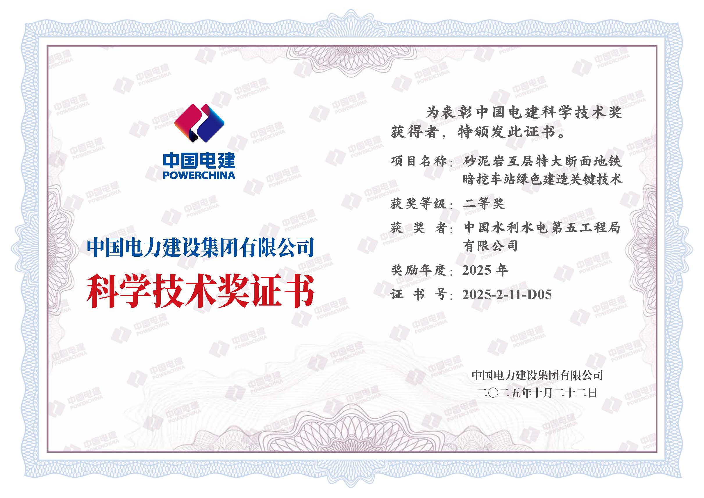 公司牵头及参与申报的7项成果成功上榜,彰显了公司在工程建设领域的深厚技术积淀与创新实力。其中,《城市轨道交通工程智能化工业化资源化施工关键技术》荣获特等奖;《西藏雅鲁藏布江大古水电站工程关键技术研究及应用》荣获一等奖;《超高层房屋建筑绿色智能安全高效施工关键技术》《砂泥岩互层特大断面地铁暗挖车站绿色建造关键技术》荣获二等奖;《中东特大型综合港工程突堤码头施工关键技术》《抽蓄工程小直径TBM多场景施工关键技术研究与应用》《城市空间受限条件下公路桥梁智能化高效建造关键技术》荣获三等奖。