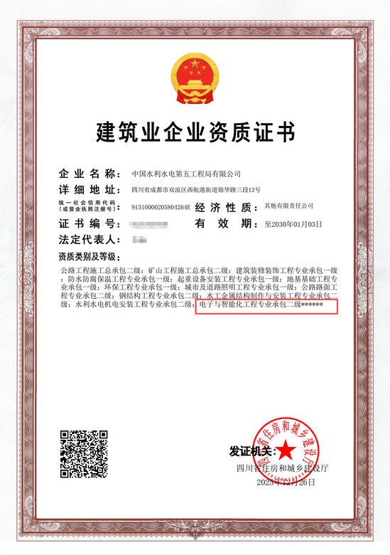 日前,公司申报的“电子与智能化工程专业承包二级”资质获四川省住房和城乡建设厅核准,成功取得该项重要数字化施工资质,标志着公司在电子与智能化领域的专业能力获得官方权威认可,为拓展数字化业务版图筑牢坚实根基。