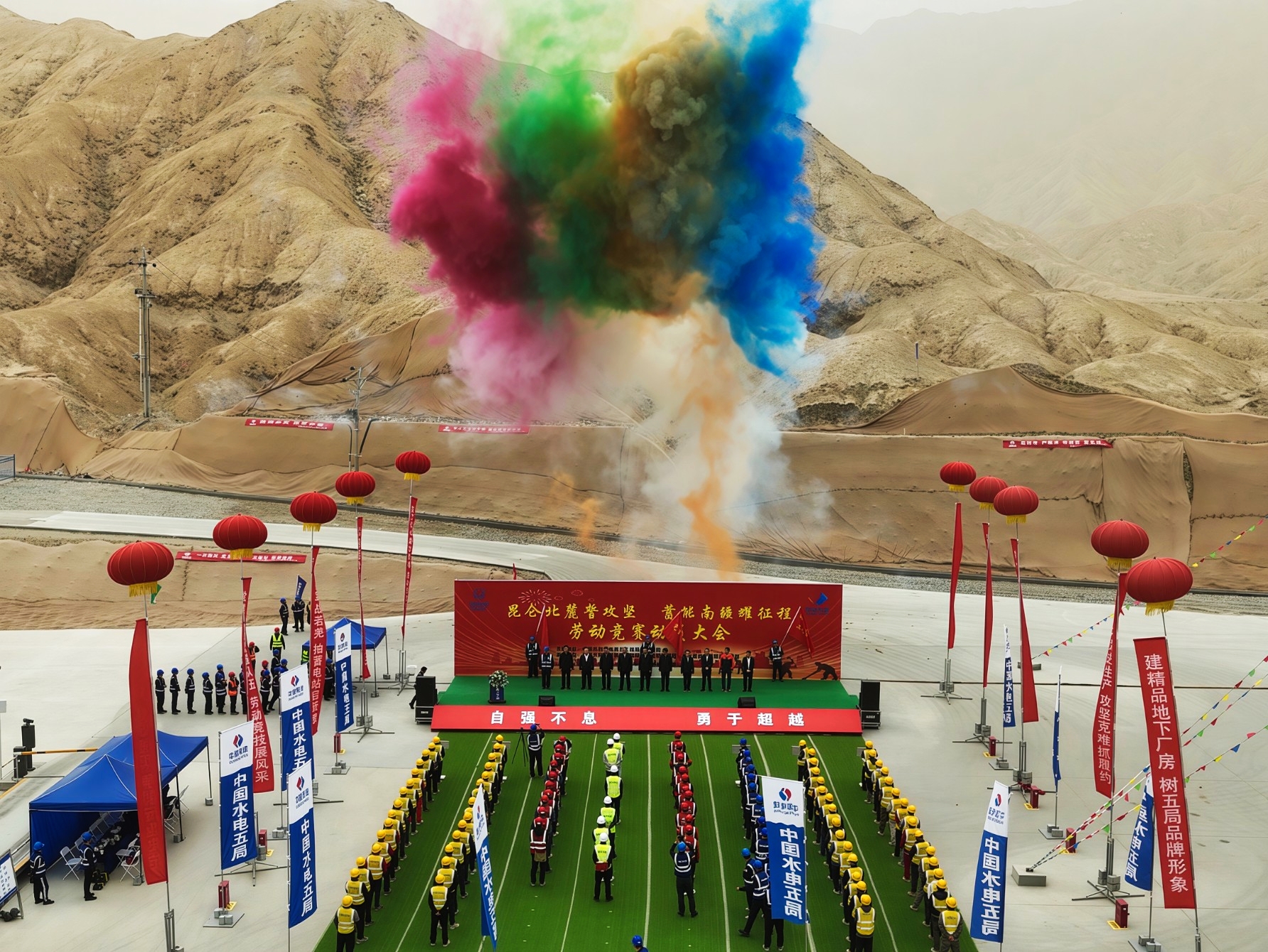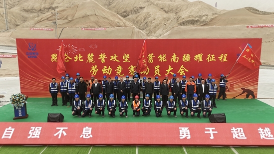 4月21日,公司“昆仑北麓誓攻坚 蓄能南疆耀征程”劳动竞赛在新疆若羌抽蓄项目启动。公司党委副书记、工会主席向君出席动员大会。