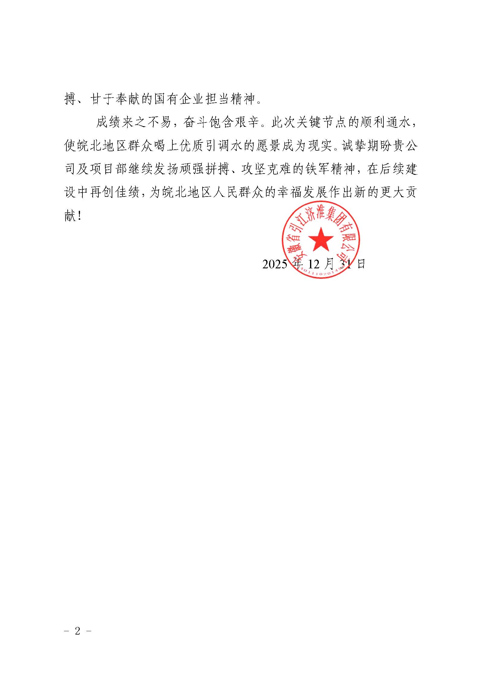 安徽省引江济淮集团有限公司感谢信