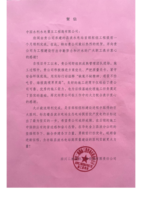 四川二滩国际工程咨询有限责任公司贺信