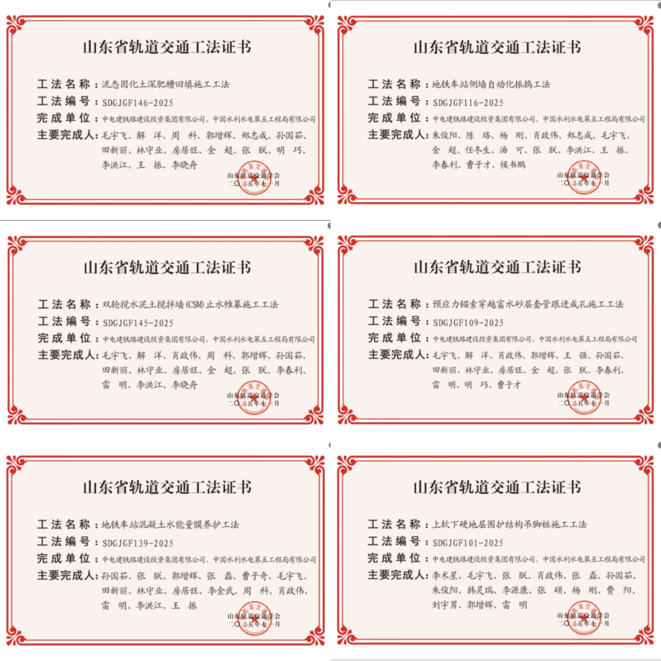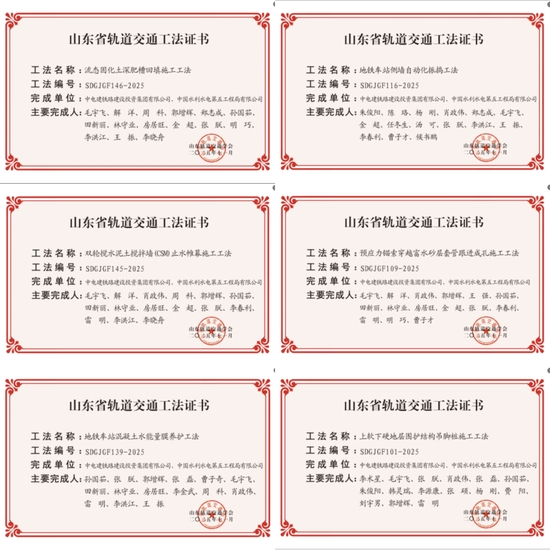 近日,山东轨道交通学会正式发布《关于公布2025年山东省轨道交通工法的通知》,共有198项先进工法被认定为2025年山东省轨道交通工法,其中,青岛地铁15号线项目有6项工法凭借其技术创新性与实践价值成功入选。