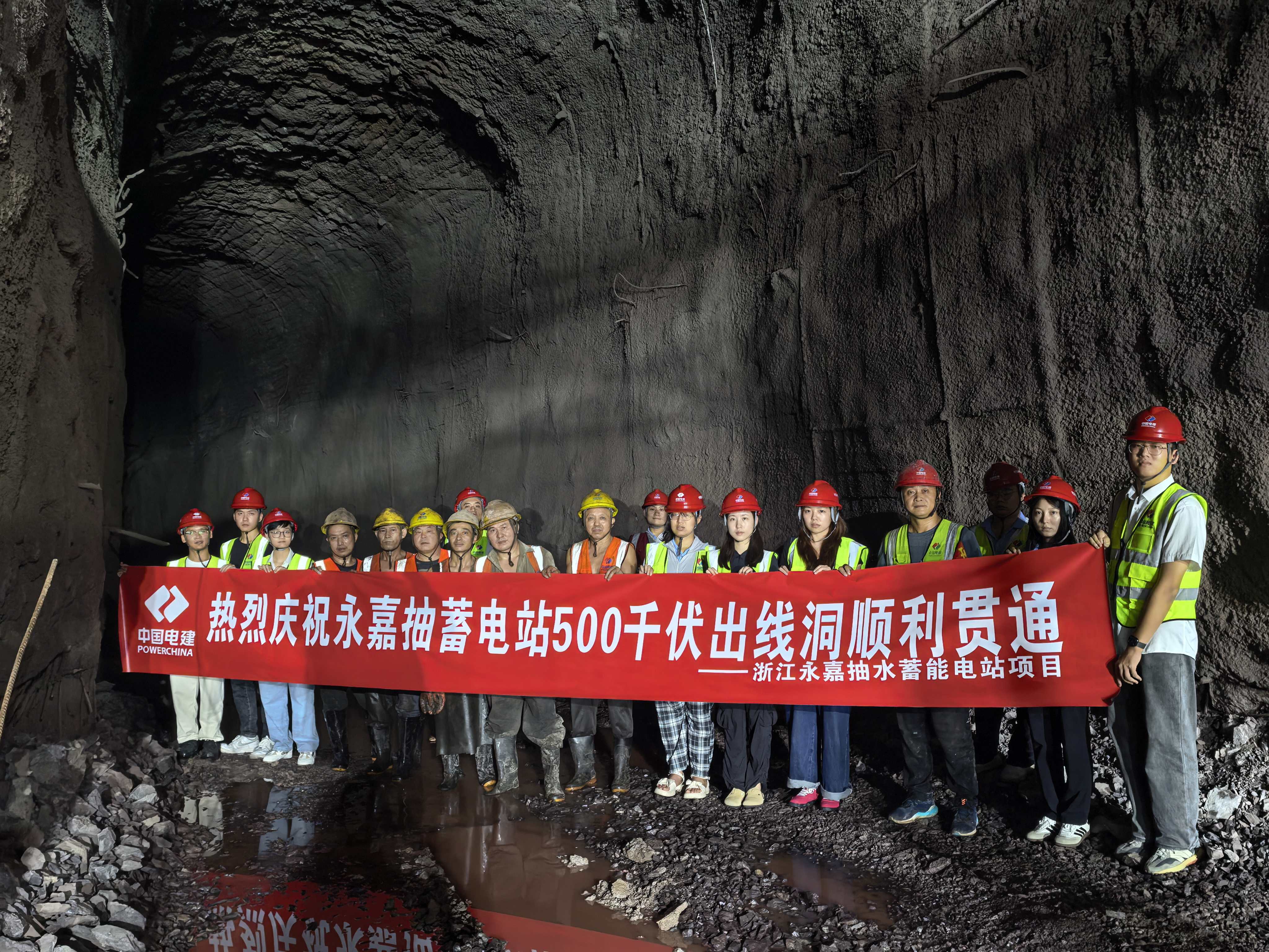 9月24日,永嘉抽水蓄能电站500千伏出线洞贯通,为后续电站500千伏高压电缆的敷设与送电通道的形成奠定了坚实基础,标志着电站地下厂房系统与外界电网的连接“咽喉”工程取得决定性胜利。