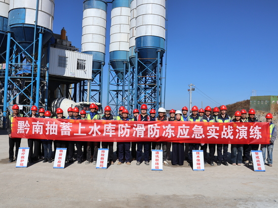 11月26日上午,黔南抽水蓄能电站上水库项目组织开展2025年度防滑防冻实战演练。本次演练以“模拟持续低温导致路面结冰、交通中断”为情景,全面检验应急预案可行性、应急队伍响应速度及物资装备保障能力。