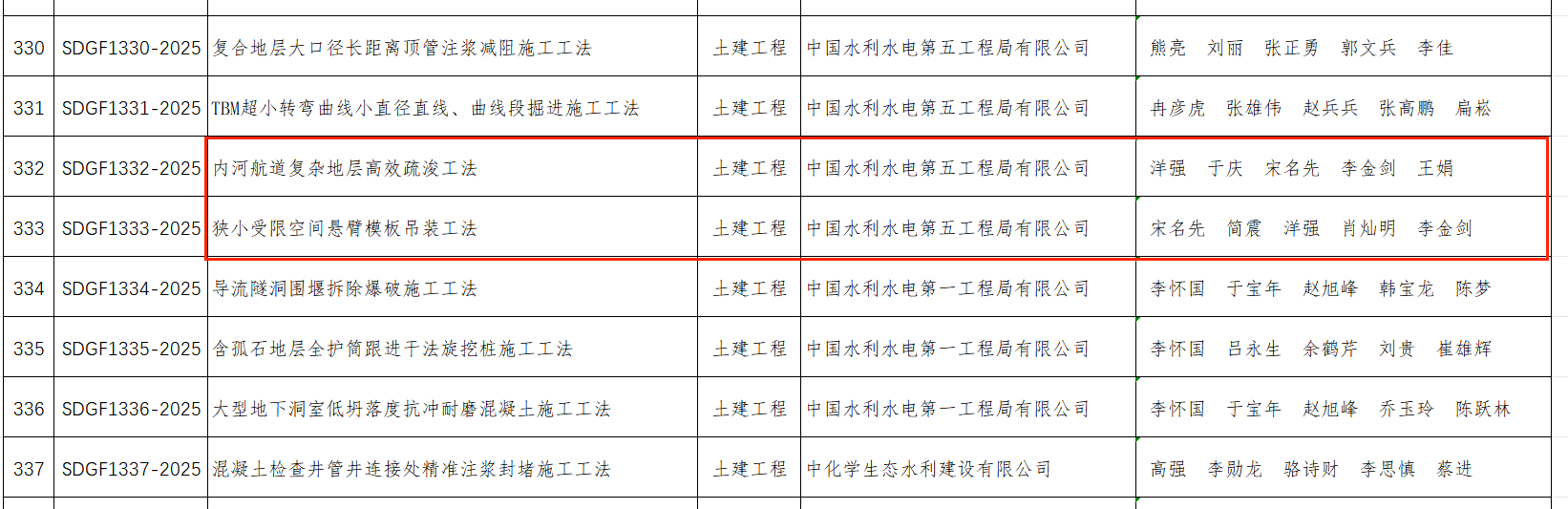 11月24日,从中国水利工程协会获悉,公司老木孔项目申报的《内河航道复杂地层高效疏浚工法》及《狭小受限空间悬臂模板吊装工法》2项成果获评水利行业工法。