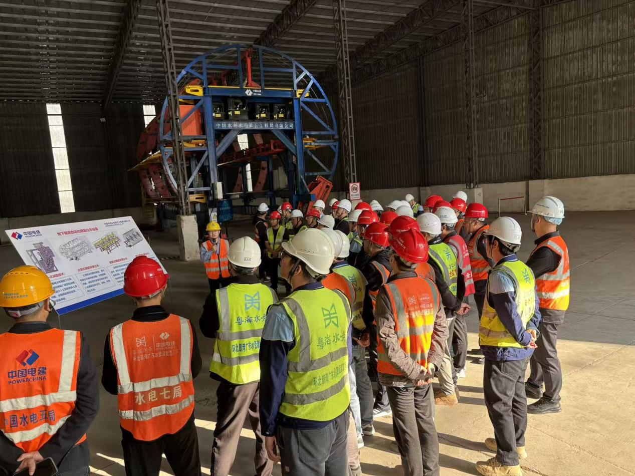 2025年12月29日,广东粤海粤西供水有限公司高鹤管理部组织环北部湾广东水资源配置工程的建设单位、施工B1–B4标段、施工C1–C2标段,以及施工3、4标段监理部的项目负责人与主要领导,赴水电五局制安公司环北项目自动化钢筋台车研制现场开展现场观摩与技术指导。