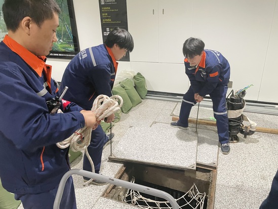 在2025年8月10日,成都市遭遇强降雨天气,气象部门相继发布暴雨黄色、橙色预警。面对严峻汛情,项目部始终保持高度警惕。当日,调度员在执行远程巡视任务时敏锐发现怡心湖至剑南主所电缆廊道内水泵虽持续运行,但水位未见下降,立即判断可能存在进水险情,第一时间启动内部应急响应,迅速组织值班人员赶赴现场核查。经现场确认,因外部降雨量远超预期,大量雨水突破防护设施涌入廊道,导致内部严重积水,且水位仍在缓慢上升,若不及时处置,将直接威胁电缆设备安全。项目部迅速响应,紧急组建由项目管理人员、专业工程师及值班人员组成的8人应急小组,冒雨赶赴现场。面对恶劣环境和紧迫形势,应急小组分工明确、协同作战:现场制定科学排水方案,管理人员紧急协调物资,作业人员迅速布设管线开展强排作业。不顾工装被雨水浸透,仍坚守岗位持续作业,从凌晨4时奋战至上午10时,最终成功排空积水,彻底排除险情,有力保障了地铁线路的电力供应与运营安全。