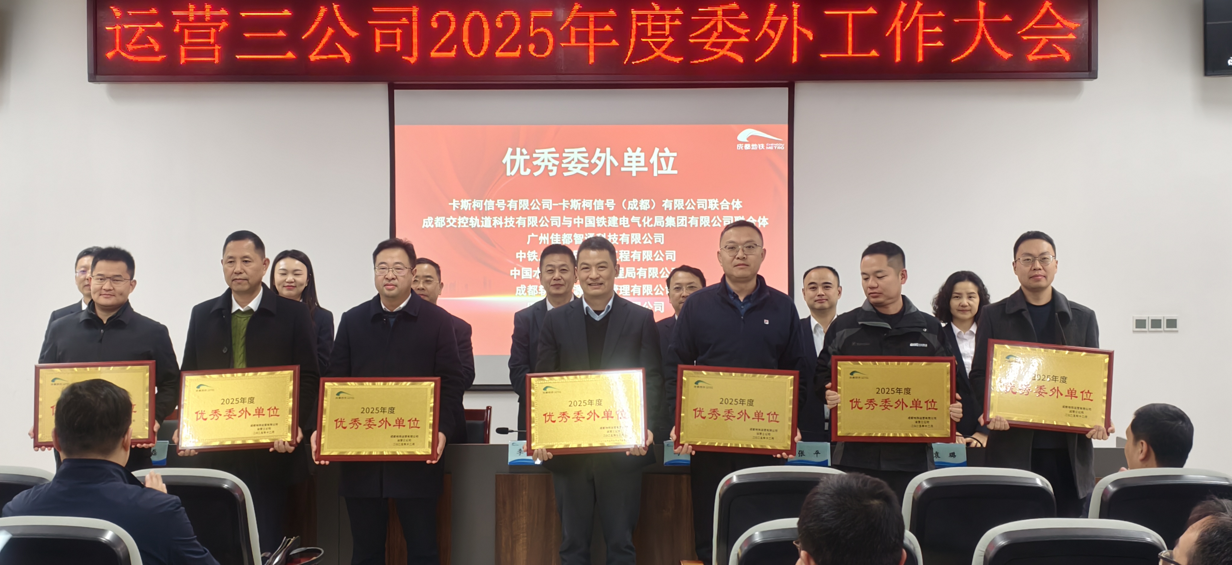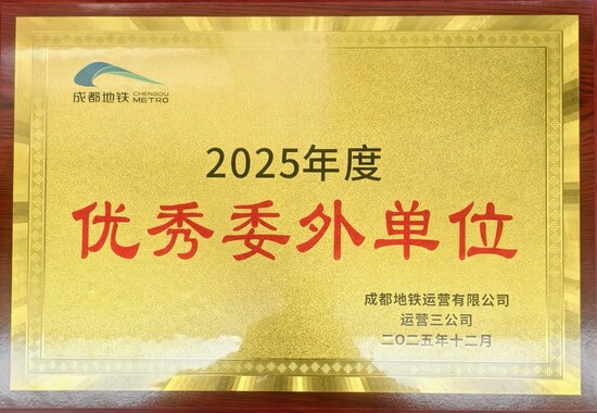 12月11日,在成都地铁新苗控制中心举行的运营三公司2025年度委外工作大会上,成都地铁19号线机电装饰装修维保项目部凭借全年优异的综合表现,荣获成都地铁运营三公司2025年度“优秀委外单位”称号。这一荣誉,既是业主单位对项目团队一年来辛勤付出的肯定,也激励着全体成员在今后的工作中继续踏实前行、精益求精。