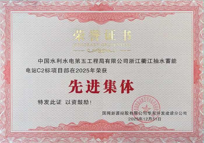 近日,水电五局衢江项目团队凭借扎实过硬的综合管理能力与持续稳定的安全业绩,在国网新源华东开发建设分公司2026年度质量安全座谈会上喜获表彰,获评2025年度“先进集体”荣誉称号,并连续两年获评“无违章工区”荣誉称号,4名职工获评“无违章个人”荣誉称号。