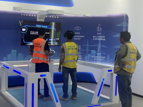 走进安全体验馆,员工戴上VR设备,瞬间“置身”于塌方、触电、高处坠落等事故现场,切身感受违规操作带来的严重后果;在高空坠落体验区,通过短暂失重感让人心有余悸,从而真正敬畏规程。每一次体验都是一次震撼教育,许多工人坦言:“以前觉得戴安全帽是应付检查,现在明白,那是保命的底线。”体验结束后,系统会自动生成操作失误分析报告,讲解员结合报告进行针对性指导,实现了“体验—反思—改进”的闭环学习。“我们利用安全体验馆开展沉浸式培训,将抽象知识转化为具象体验,有效解决了工友‘听不懂、记不住’问题显著提升了培训实效。”项目安全负责人介绍道。除此以外,项目部还定期组织应急演练,模拟火灾、涌水等险情,提升全员应急处置能力。安全不再是墙上标语,而是刻进了每个人的行为习惯里。截止目前,黄龙项目已经利用安全体验馆开展沉浸式安全培训28场次,应急演练10余次,累计参与人员达1200余人次,实现新进场工人培训覆盖率100%。