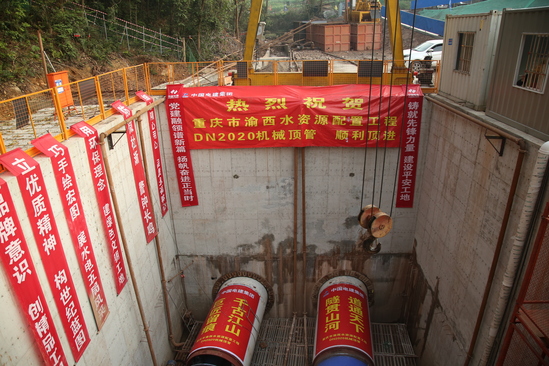 工程伊始,面对“乱石穿空,惊涛拍岸”的复杂地质,建设者以科技创新破题。在璧山供水通道攻坚战中,当852米的地下征程遇上征地困局,常规的中继井方案不具备施工条件,然五局建设者以“逢山开路,遇水架桥”之魄力,创造性提出“双向顶进,孔内对接”之法。此方案顶管自两头双向对顶,穿九江大道段顶进钢套管,钢套管施工完成后对钢套管外壁进行注浆填充,恰似“金戈铁马”开通道;穿迎新村高地顶管则如“潜龙入地”,在完成740米顶进后,精确从钢套管内破壁而出。这一“地下穿针”之术,实为现代版“大禹导河入海”的智慧演绎。