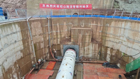 施工期间,技术团队成立现场攻关小组,测量人员以“毫厘必较”之匠心,日夜监测顶进轨迹;技术人员如“庖丁解牛”般精准调控千斤顶压力。每当夜幕降临,工地灯火通明处,正是“挑灯看剑”的攻坚时刻。2023年5月2日,当两端顶管在地下三十米深处实现“金石相契”般的完美对接时,较原计划提前28日贯通,这场“地心之舞”终以零偏差画上圆满句号。