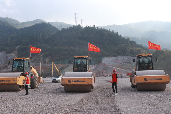 他的“刻刀”是32吨的振动碾。当第一缕阳光跃上山顶,李永强便在机械轰鸣与人群嘈杂中举起对讲机:“开始碾压。”