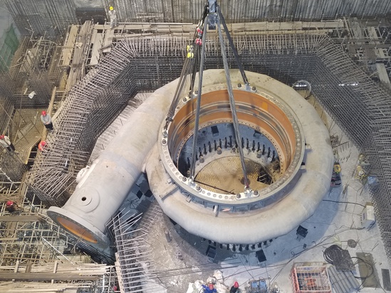 自1号机组尾水管首节吊装就位,至此开启了“五局安装”时刻。尾水管长度为21米,共9个单元节。当尾水管安装完成,安装铁军用这个重78.3吨的庞然大物,以提前5天实现2024年第一个节点目标的佳绩,于地下厂房内精心打造出首个亮眼的“作品”,初显锋芒。