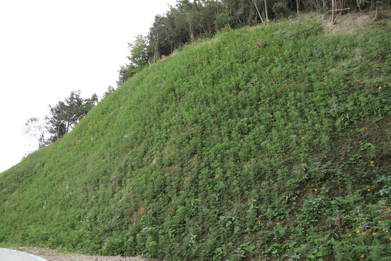 考虑到项目所在地降雨充沛,大规模土方作业易引发水土流失,团队引入CBS植被混凝土生态防护技术,为裸露岩坡披上“生态绿装”。该技术将特制混凝土与本土适生草籽科学配比,喷覆后可同步实现边坡稳固与生态复绿;项目团队还结合天台本地气候特点优化配方,让植被成活率超过95%,如今修复区已与周边山林浑然一体,真正达成了工程与自然的无缝衔接。