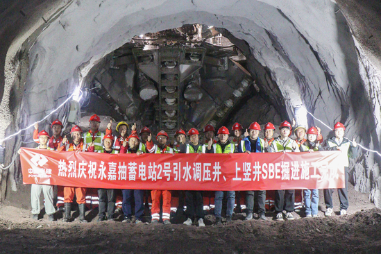 1月18日,随着国内首台可变径竖井扩孔掘进机“逐梦号”(以下简称为“SBE”)稳健地完成最后一米的掘进征程,永嘉抽水蓄能电站总长489米的2号引水调压井、上竖井的SBE掘进任务,在这一瞬间圆满画上了句号。至此,永嘉项目SBE竖井掘进施工任务全部圆满完成,累计掘进里程达1334米,成功开创了国内抽水蓄能领域500米级深竖井机械化施工先河。这不仅标志着该工程关键线路取得重大突破,更意味着水电五局在超深竖井机械化、智能化施工领域实现了里程碑式的跨越,为这座总装机120万千瓦的“绿色能量心脏”注入了强劲动能。
