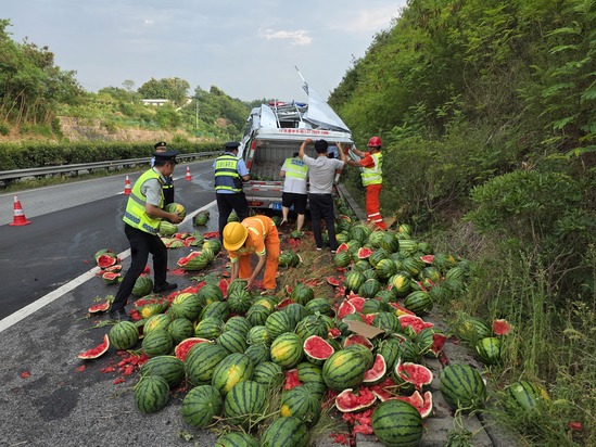 “您好,发生什么事了?需要帮忙吗?”这或许是队员们说得最多的一句话。他们的故事,常常始于对险情的无畏冲锋。2025年2月,高速公路边网外民房突发火灾,浓烟滚滚。正在例行巡查的队员们见状,毫不犹豫提起灭火器冲向着火点,成功抑制火势扩大,无人员伤亡。同年8月,一辆满载西瓜的货车侧翻,滚落的西瓜和焦急的司机困于烈日之下。队员们主动上前,在路面温度接近50℃的高温中,将完好的西瓜抢运至阴凉安全区,最大限度为司机挽回损失。