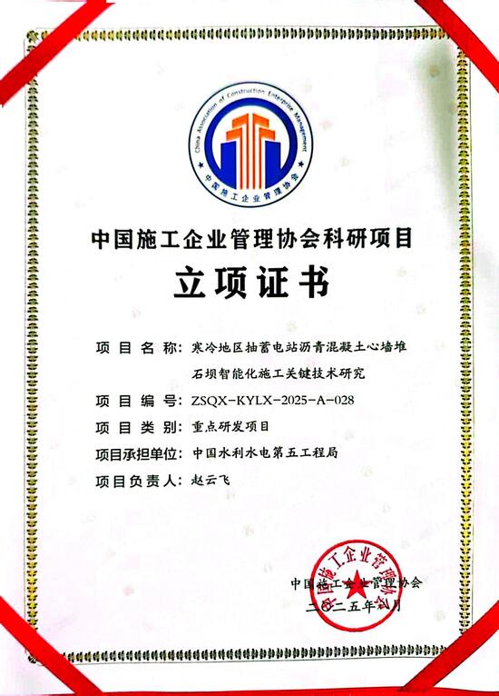 他坚持创新创效与成本管控双向发力,带领团队优化施工方案,增设临时堆渣场、引入移动筛分系统,缩短弃渣运距、压降骨料采购成本,累计节约费用110万元;累计上报专利7项、立项QC课题7项,“寒冷地区抽蓄电站沥青混凝土心墙堆石坝智能化施工关键技术研究”纳入中国施工企业管理协会重点研发项目并获颁立项证书,全年归集科研费用2822万元,占项目实际产值8.63%,超额完成公司考核指标,用实干与智慧,书写了精彩的“从0到1”。