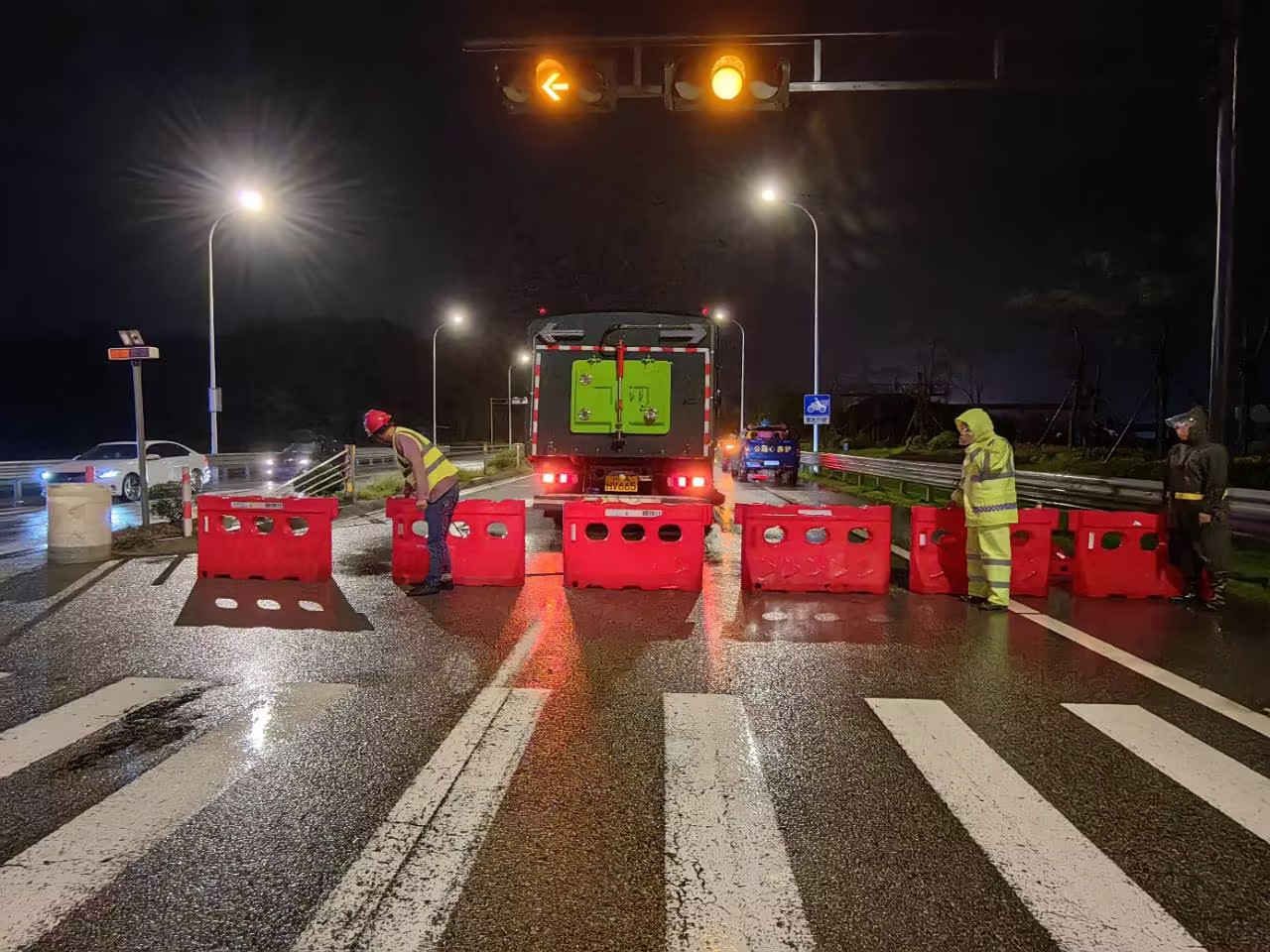 同年,远在浙江省岱山县,面对台风“康妮”的凶猛来袭,五局岱山项目团队的守护为群众筑起“铜墙铁壁”。当地气象部门发布台风预警,强调新江南大桥是防风关键点,必须在风暴前锋抵达前封闭。岱山项目立即分派全体人员驻守新江南大桥两端,顶着风雨劝阻试图通行的车辆和行人,最终成功在规定期限内设障封桥。那一夜,大桥安然,人车无恙。