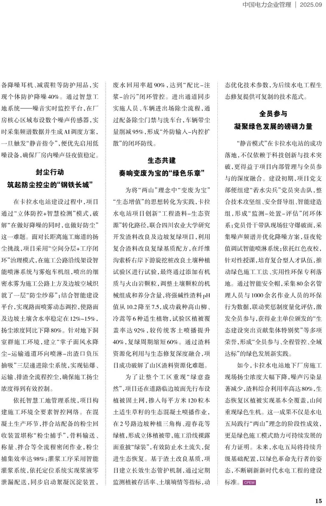 【中国电力企业管理杂志】生态优先 实现工程与自然和谐对话