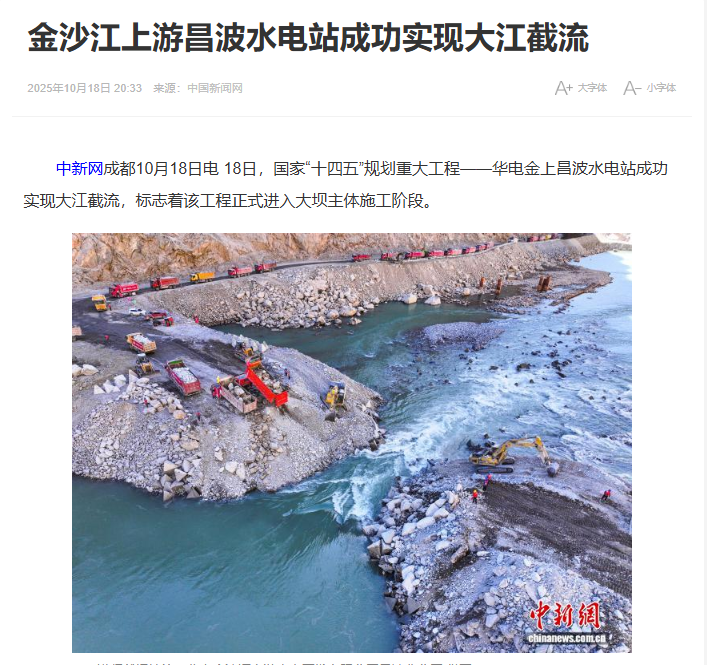 中新网成都10月18日电 18日,国家“十四五”规划重大工程——华电金上昌波水电站成功实现大江截流,标志着该工程正式进入大坝主体施工阶段。