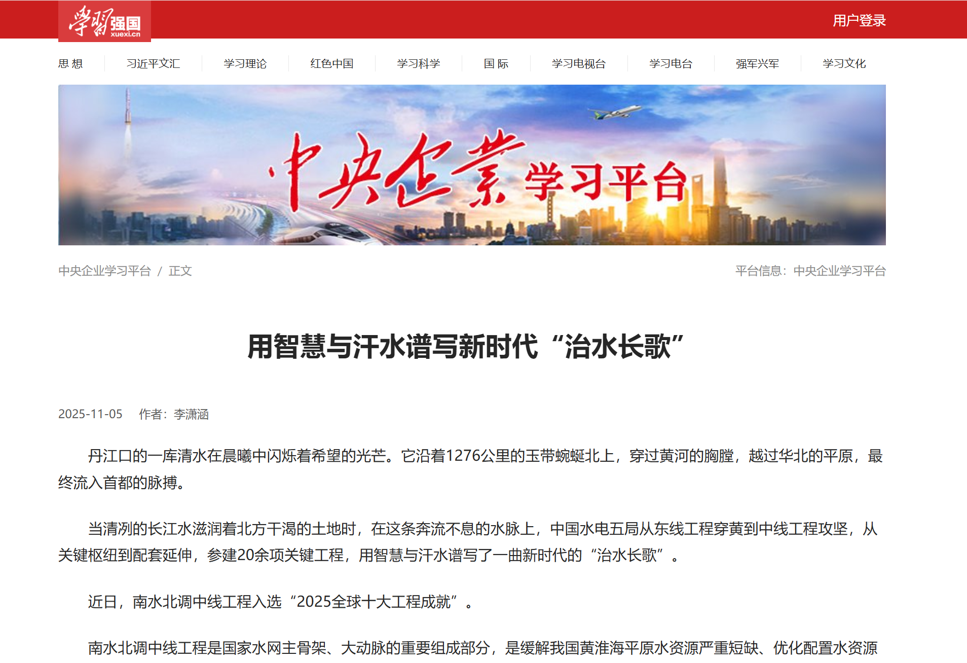 当清冽的长江水滋润着北方干渴的土地时,在这条奔流不息的水脉上,中国水电五局从东线工程穿黄到中线工程攻坚,从关键枢纽到配套延伸,参建20余项关键工程,用智慧与汗水谱写了一曲新时代的“治水长歌”。