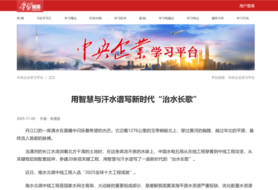 近日,南水北调中线工程入选“2025全球十大工程成就”。