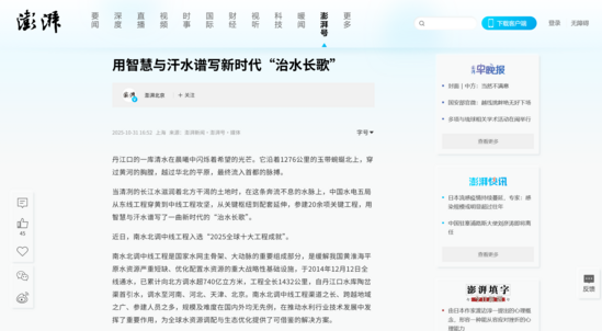 近日,南水北调中线工程入选“2025全球十大工程成就”。