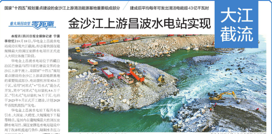 本报讯(四川日报全媒体记者 宁蕖 李欣忆)10月18日,华电金上昌波水电站成功实现大江截流,标志着我国在建规模最大的调压室群水电项目正式进入大坝主体施工阶段。