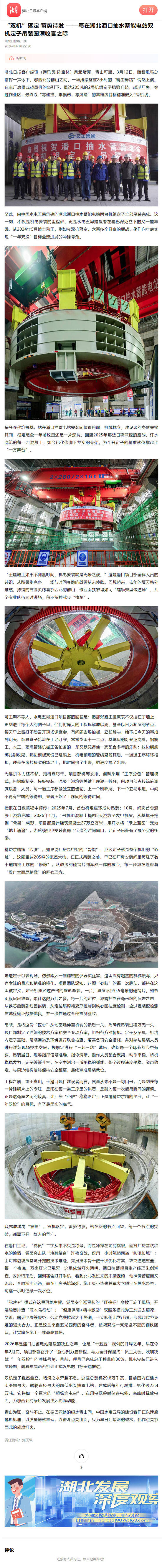 至此,由中国水电五局承建的湖北潘口抽水蓄能电站两台机组定子全部吊装完成。这一刻,不仅是机电安装的里程碑,更是水电五局建设者在秦巴深处立下的又一座丰碑。从2024年5月破土动工,到如今双机落定,六百多个日夜的鏖战,化作向年底实现“一年双投”目标全速进发的冲锋号角。