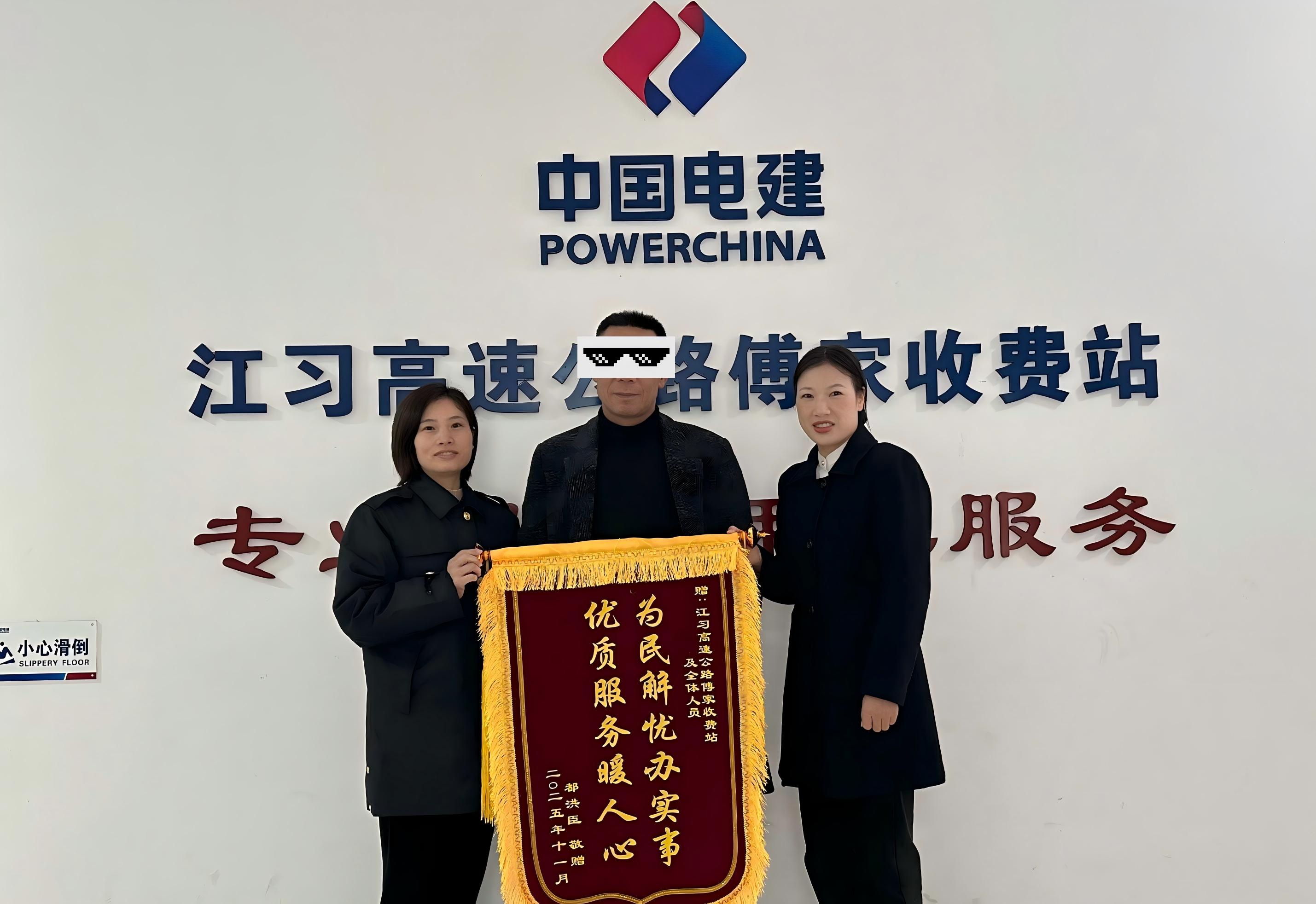 11月30日,司乘都先生怀着满心谢意,手持一面印着“优质服务暖人心,为民解忧办实事”的鲜红锦旗,专程来到中电建江津至习水高速运营管理部,将这沉甸甸的感谢送到了曾经帮助过他的工作人员手中,为这段跨越数月的暖心故事画上了圆满的句号。