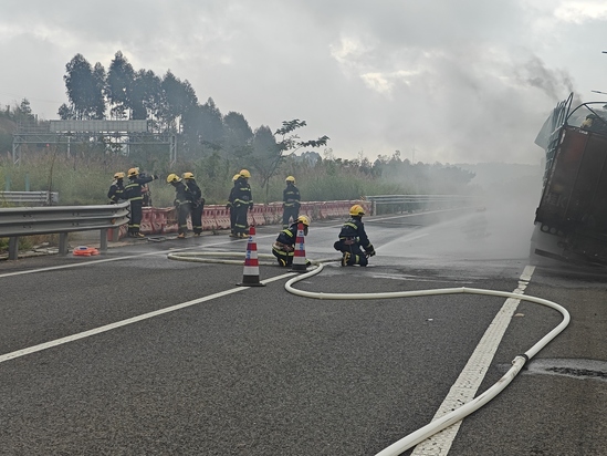 10月15日,石泸高速(石林至逸圃方向)发生一起货车自燃事故。中电建石泸高速运营管理部迅速启动应急响应机制,与消防、交警、综合执法等单位紧密配合,通过高效的“一路多方”联动处置,成功在20分钟内控制火情,实现无人员伤亡,并在最短时间内恢复道路通行。
