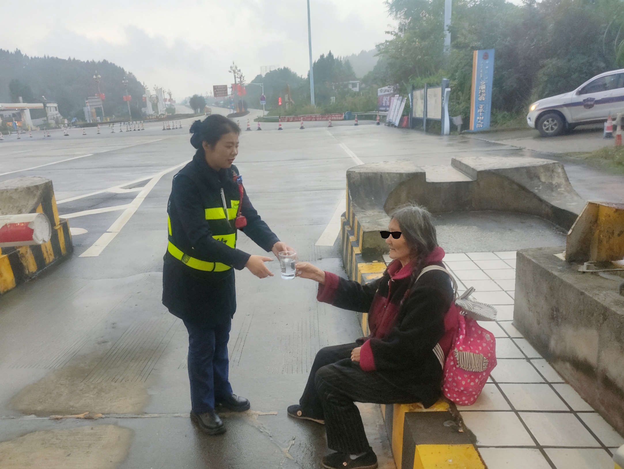 当日上午,安岳收费站收费执勤人员在道口疏导车流时,发现一位背着花色背包的老人在广场边缘徘徊,神情茫然且不时驻足张望。考虑到高速广场车流密集,老人的处境存在极大安全隐患,执勤人员立即上前询问情况,并第一时间将相关情况上报值班班长。