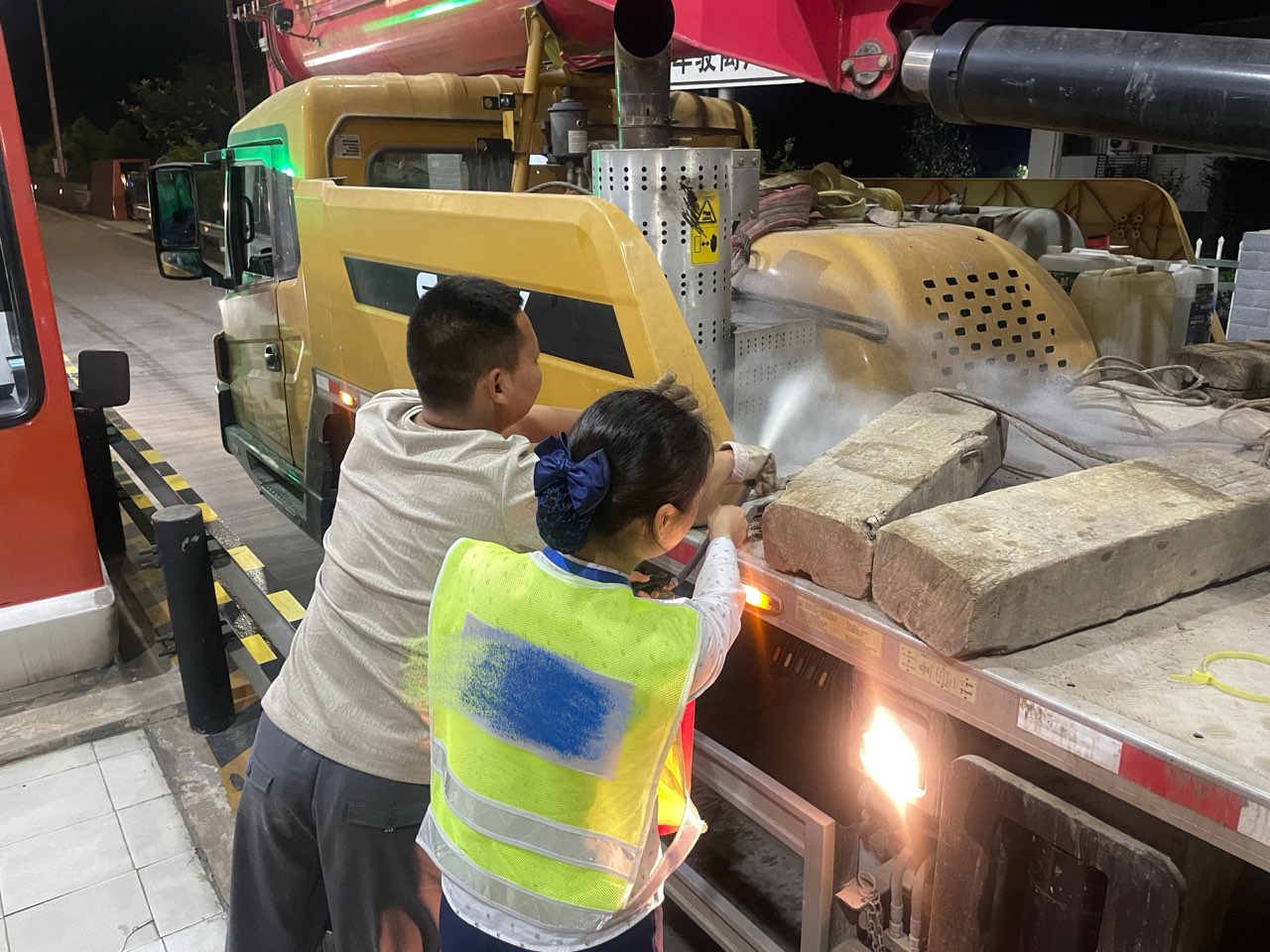 当日傍晚,傅家收费站入口混合车道迎来一辆专项作业车辆,收费员在顺利完成收费流程后,准备放行时,敏锐地察觉到该车排气管有火花闪烁,并伴有焦糊味。收费员立即意识到车辆可能存在起火风险。面对紧急情况,收费员保持冷静,迅速向司乘发出停车指令,并立即取用岗亭旁的灭火器,迅速奔向车辆。