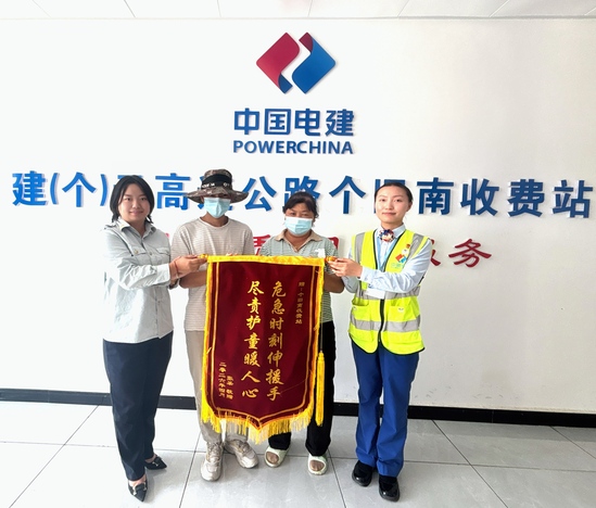 4月13日上午,中电建建(个)元高速运营管理部个旧南收费站收到一份特殊的致谢,当地村民专程来到收费站,将一面印有“危急时刻伸援手 尽责护童暖人心”的锦旗送到值班长手中,以最真挚的方式,感谢其此前及时出手救下两名幼童的暖心举动。