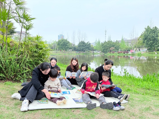 活动当天,4名职工携子女前往公园,围坐在绿茵草坪上,开启温馨的共读时光。她们用生动的语言讲述书中故事,孩子们或专注聆听,或好奇提问,清脆的童声与轻柔的春风交织,现场氛围温馨融洽。