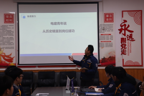 在“电建青年说”环节,多位来自技术、施工、安全一线的青年骨干代表走上前台。他们紧密结合观影和诵读带来的震撼与感悟,畅谈如何将澎湃的爱国热情转化为扎根项目、建功立业的实干行动。技术员小魏分享了从“前辈们在极端条件下克难攻坚”联想到目前项目面临的施工技术难题,表达了在面对困难时依然要保持勇往直前的决心和魄力;安全员小黄谈及历史教训中的“防患于未然”,论述了如何将更严谨、更较真的态度注入日常安全检查。他们的发言朴实具体,展现了新时代电建青年将历史记忆转化为岗位建功的内在动力。