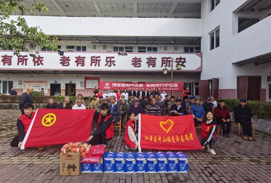 10月27日,江津至习水项目团支部联合重庆市江津区中山镇人民政府、江津区中山镇卫生院走进江津区中山镇中心养老院,9名团青志愿者分为医疗服务组和互动陪伴组,为养老院的老人们送去关怀与温暖。