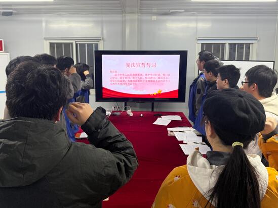 活动伊始,青年团员们庄严宣誓,铿锵的誓言诠释对宪法权威的尊崇与恪守职业规范的决心。随后,播放了《宪法一生》、《感受宪法力量》等系列影片,让大家深刻体会宪法与职业、生活、国家建设的深层联结,筑牢法治思想根基。最后,团员们签署《青年法治践行承诺书》,将遵法学法守法用法融入建设施工全过程,筑牢项目合规防线。后续,团支部还将组织志愿者走进工地,普及安全生产、权益保障等法律知识,让法治理念扎根一线。