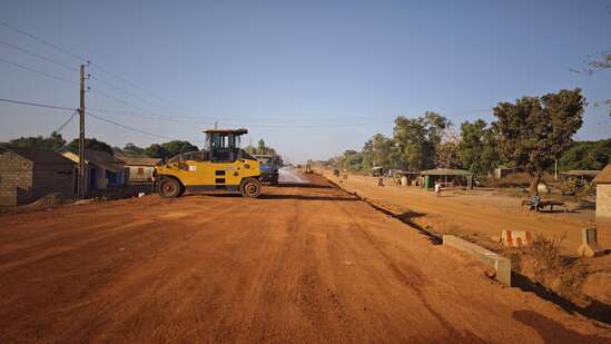 贝宁棉花之路项目于2025年3月份完成路基土方填筑72公里,完成比率99.3%,完成垫层施工和精品红土粒料底基层施工69公里,完成比率95.2%,未完成部分为转盘及城镇段。4月份进入雨季后,考虑到频繁降水对土方施工影响较大,项目部统筹资源集中精力进行级配碎石和GB沥青混凝土摊铺。11月份进入旱季后,在已完成大部分级配碎石和GB沥青混凝土摊铺工作的基础上,调配少量设备,对未完成土方工程进行收尾。11月22日18点,随着压路机完成最后一次碾压,标志着项目土方施工已完成全部。后续,项目将集中全部资源加快推进级配碎石和GB沥青混凝土摊铺工作。