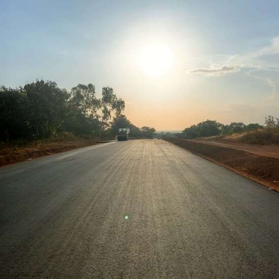 由公司承建的贝宁棉花之路项目起点位于峡谷省朱古市,终点位于阿塔科拉省佩洪科市,全长72.478公里,施工内容包含城区道路、旷野区道路、现有桥梁拆除重建、新建收费站、十字路口施工、各类排水工程的施工、路面附属工程以及三网迁移等。沥青混凝土路面采用9厘米厚GB0-14沥青混凝土+5厘米厚BB0-10沥青碎石铺筑,其核心材料能够有效应对日益增长的交通压力和所在国别复杂的气候条件。目前,项目已完成GB沥青混凝土面层铺筑,并于12月5日开始快速推进5厘米厚BB0-10沥青碎石铺筑工作。