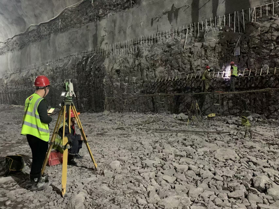 面对这块“硬骨头”,项目部以“如切如磋,如琢如磨”的工匠精神,打出了一套技术组合拳。钻孔样架与PVC管精细定位,将每一个炮孔的位置精确到厘米级;优化装药结构,使爆破对围岩的扰动降至最低。岩台精准开挖完成后,紧接着是锚杆注浆,这是岩锚梁质量的关键环节。为此,项目部采用精细化注浆工艺,对每一根锚杆进行全程监控,最终使岩锚梁Ⅰ类锚杆比例高达99.9%。