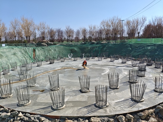2025年冬季,连续的降雨天气让施工场地变成了“烂泥塘”。基础浇筑受潮、户外作业被迫中断也成了家常便饭。生产经理曹吕军清楚记得,有一次夜间趁雨势减弱,团队抢抓窗口期开展承台浇筑作业时,泵管突然堵塞,他和工人们轮番上阵,折腾了四十多分钟,泵车才重新轰鸣起来,泥水混着混凝土溅了满身。