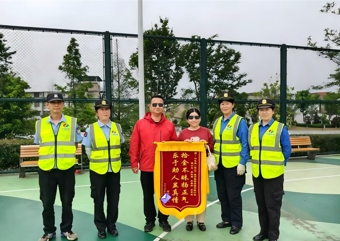 4月28日,蕲春运营项目收到一面印着“拾金不昧扬正气,乐于助人显真情”的锦旗,失主高女士亲手将其送到项目保安胡小文、孙红梅手中,以此感谢二人拾金不昧、热心助人的善举。
