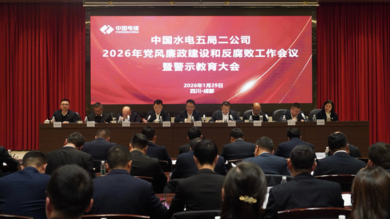 1月29日,二公司召开2026年党风廉政建设和反腐败工作会议暨警示教育大会。全面总结2025年党风廉政建设和反腐败工作,部署2026年重点任务,并开展警示教育。