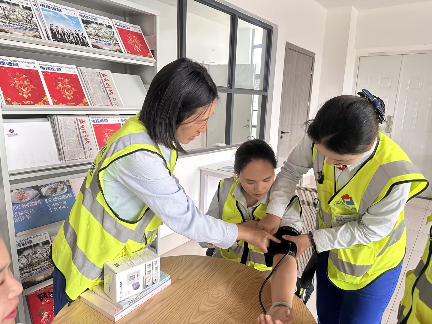 考虑到员工长期久坐易引发血压异常等问题,工会还组织开展员工血压检测服务。站内提前准备血压测量仪器,由经过基础培训的工作人员为全体员工逐一测量血压,详细记录检测数据,提醒血压异常的员工注意日常饮食、作息与运动,养成健康的生活习惯,做到身体问题早关注、早预防。
