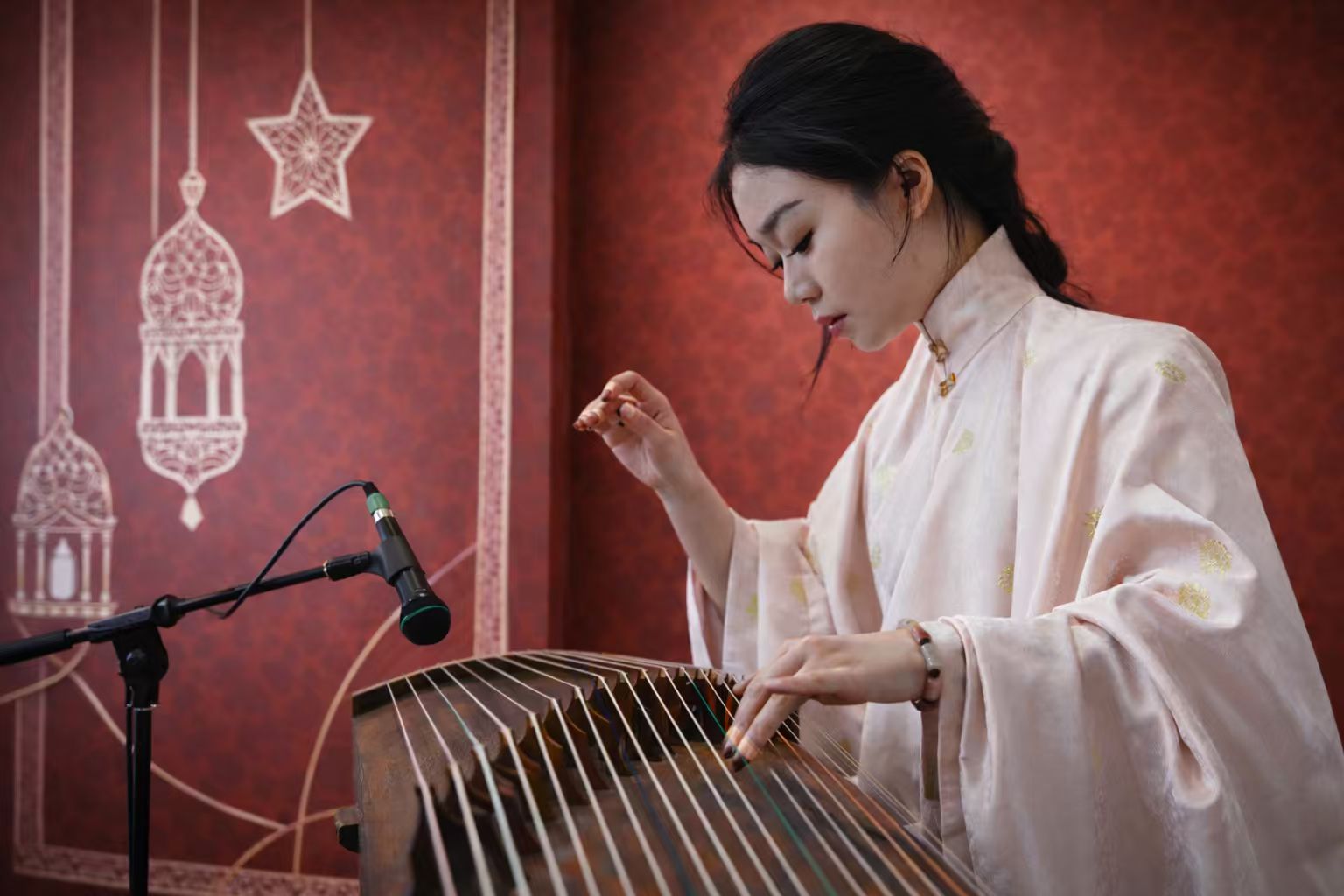 刘婧在活动中先后演绎了《高山流水》《渔舟唱晚》与《青花瓷》三首经典作品。清越的筝音自她指尖流淌而出,《高山流水》的旷远深邃,《渔舟唱晚》的宁和诗意,与《青花瓷》的现代婉约交织在一起,为现场精心呈现的融合中摩烹饪艺术的美馔佳肴,构筑了一个声景交融的文化空间。音乐超越了语言的边界,成为连接在场宾朋情感与理解的优美纽带,让中国饮食文化在异域呈现出更加立体、动人的魅力。
